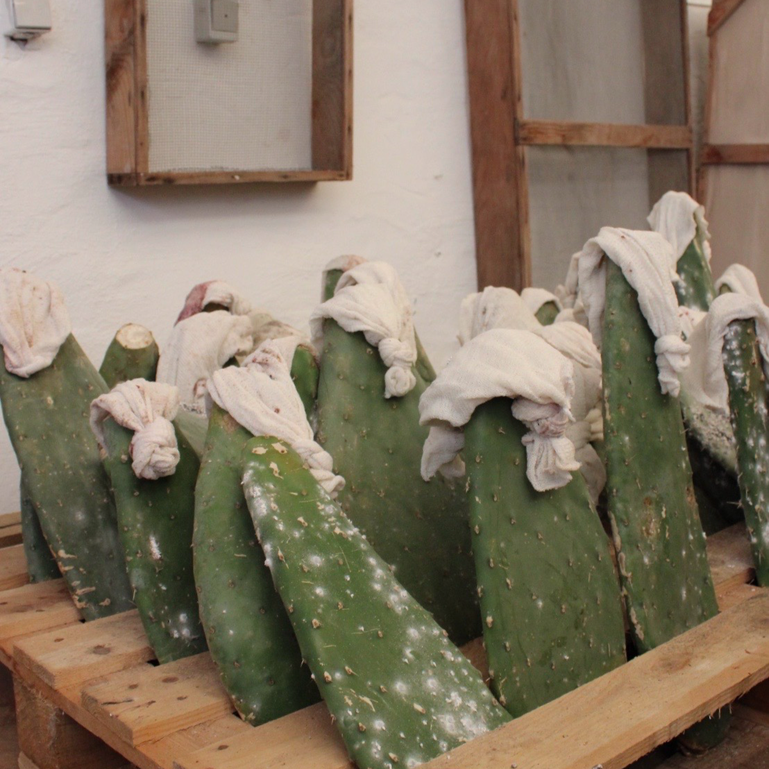 Lorenzo Pérez, founder of Canaturex a third-generation cochineal cultivator, spoke with nostalgia about his deep dedication to achieving the highest quality results. He places great emphasis on the careful cultivation of the cactus, as it is the sole food source for the cochineal, ensuring its optimal development. His passion for this traditional craft and his commitment to excellence have made him a key advocate for natural dyes, and he remains optimistic about their future.